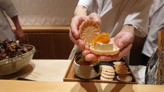 ・マンゴーフォアグラ最中は定番で、0円の笑顔と。
