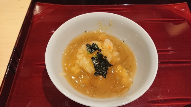 ジュンサイ入りで、ほんのり甘く、生姜のパンチも効いて
