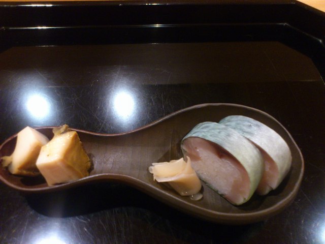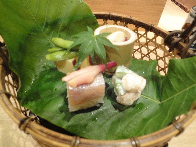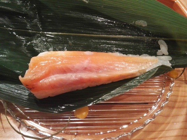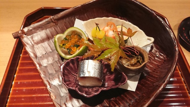 サンマ棒寿司、鮑、イクラとキノコ、牡蠣(仙鳳趾)、海苔巻き、海老、銀杏