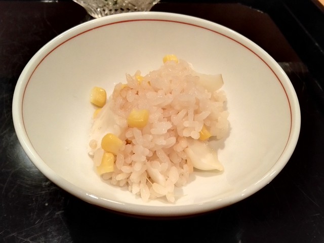 5-2 玉蜀黍のすり流し 葛打ちの鱧
