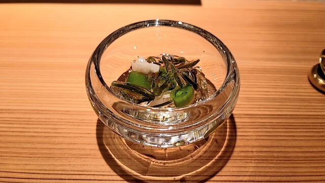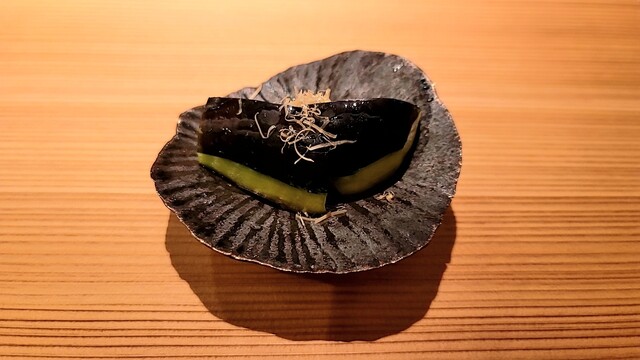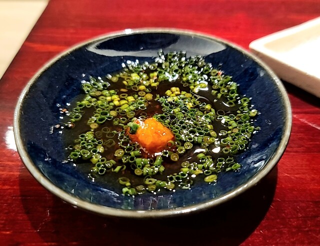 ポン酢ジュレの味が強く、折角の赤ウニの繊細な美味しさが薄れたのは残念。
