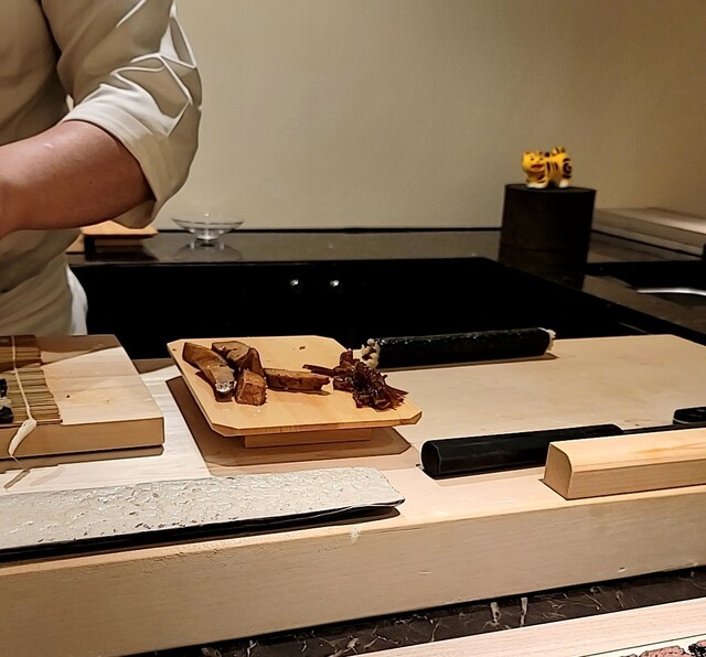 ここでガリとおしぼり(白→青)が交換され、握りが開始。