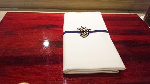 テーブルのセッティングもオシャレで、ナフキンは梅?の水引、