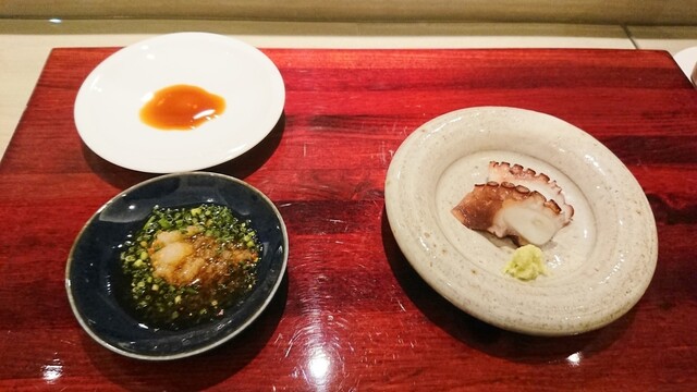 普通、お寿司屋さんの蛸は食感の違いはあれ、お醤油系の味付けが多い中、