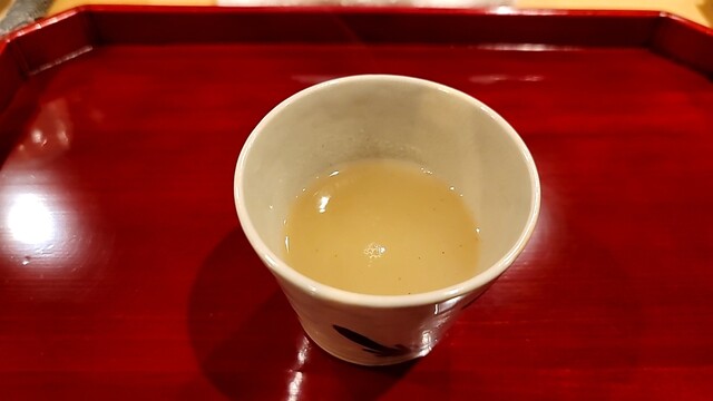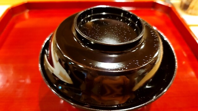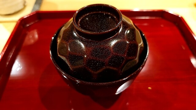 野菜出汁を使った赤出汁(野菜出汁の優しい旨味が、美味しかった)