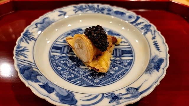 湯葉と芋のすり流しにジュレキャビアかけ