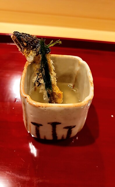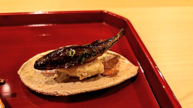 ・ホンモロコと海老芋(炊いてから揚げてある)、玉子真薯