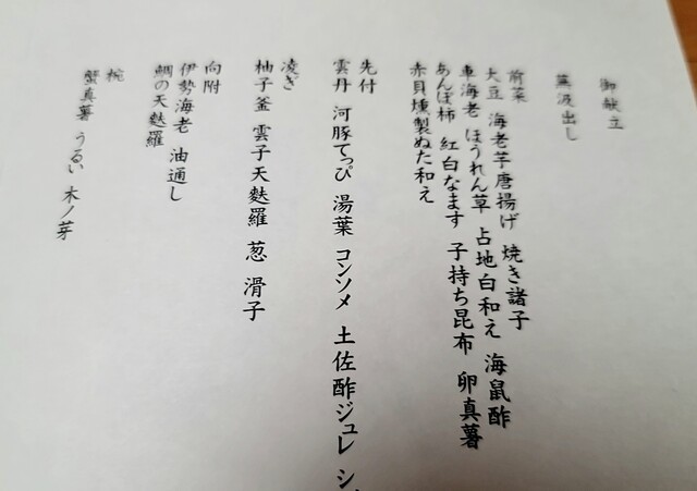 この日は献立がなく、どんな料理なのか・・・(いつも食事開始まで、献立を見ていたので)