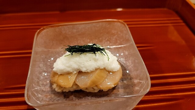 湯葉と芋のすり流しにジュレをかける定番的料理(フレンチの大石的?)