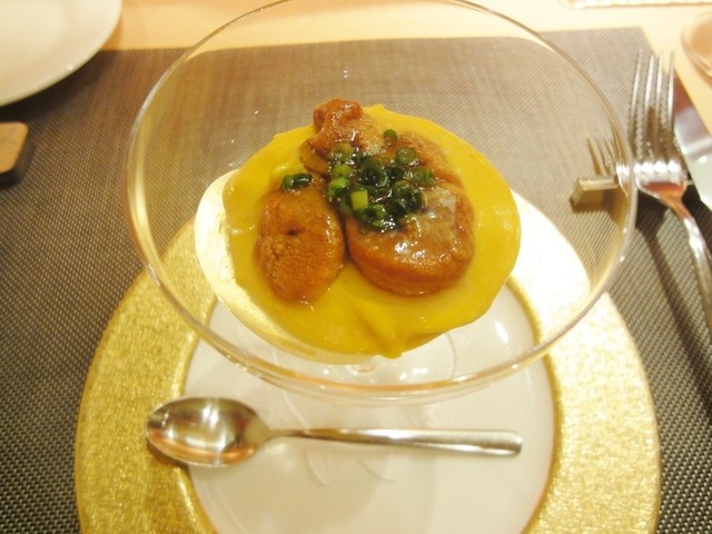 ほぼ南瓜の甘さだけの様なムースに、ほんのり塩味のウニが贅沢ですが、
