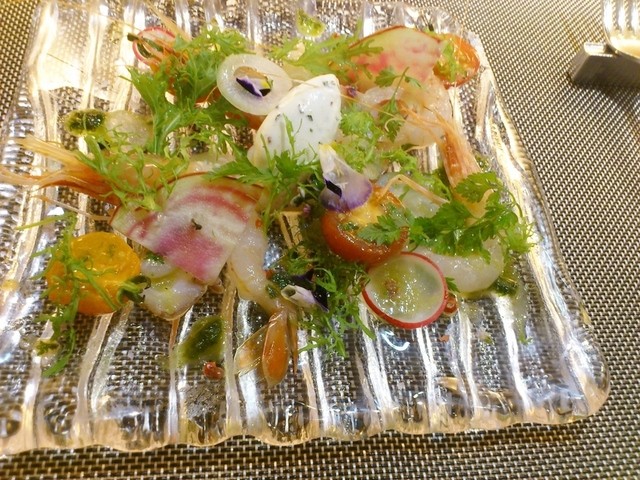 ぼたん海老のマリネ、ホッキ、蛸のオードブル、