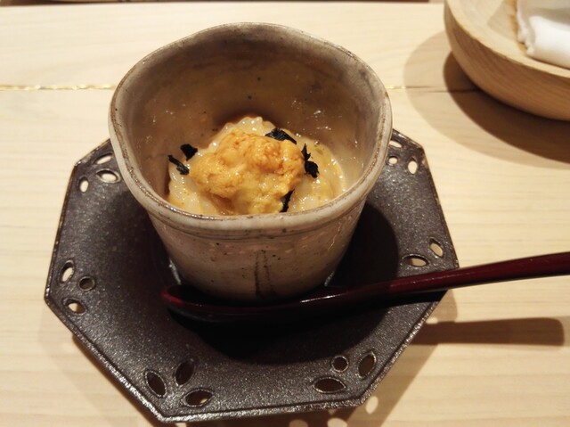 豆皿にウニと混ぜたご飯の上に、さらにウニがのってるダブル使い!
