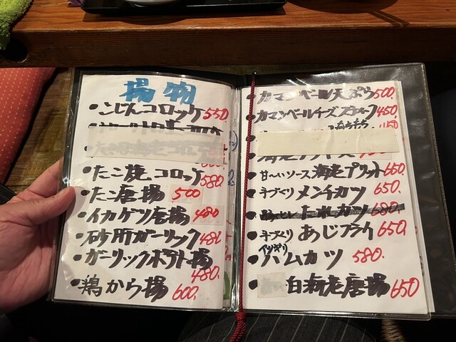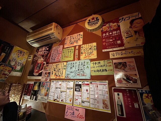 1番奥のどん詰まりの席に座り、周りを見渡します。壁にメニューが貼ってあります。メニュー表も見ながら何を頼むか思案します。