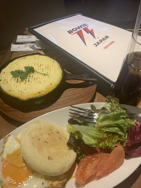 Bowieが好物だったというシェパーズパイ、っていうミートソースひき肉とマッシュポテトのパイ?が、まあまあ美味しい。
