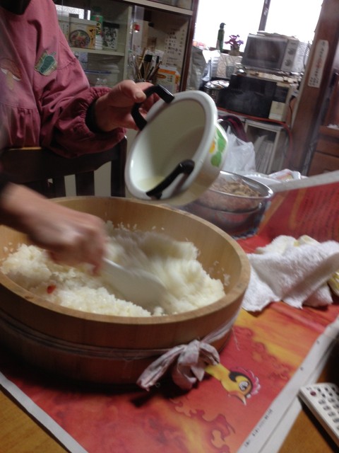 酢飯を作るのだ~~、団扇であおぐのは私。。
