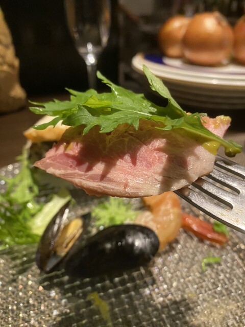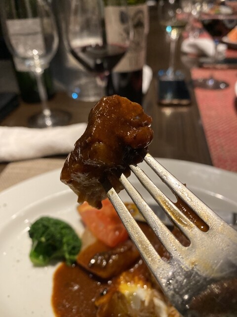 柔らかい子牛さん、ありがと、、、とても美味しい。。。カシスソースがよく合う。。。