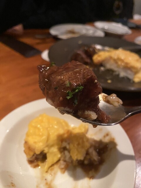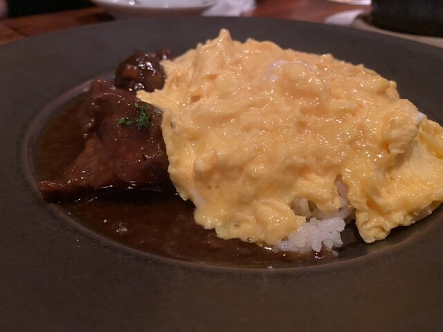 和牛ほほめしは赤ワイン煮込みとごはんにオムレツ、