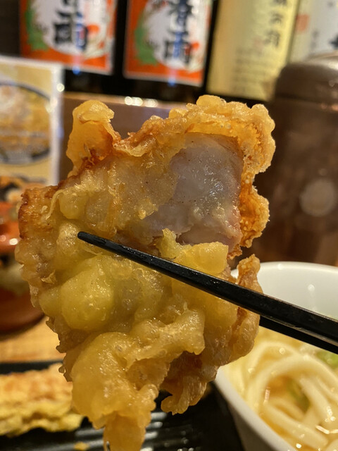 ジューシーな鶏天は、隠し包丁が入って食べやすい
