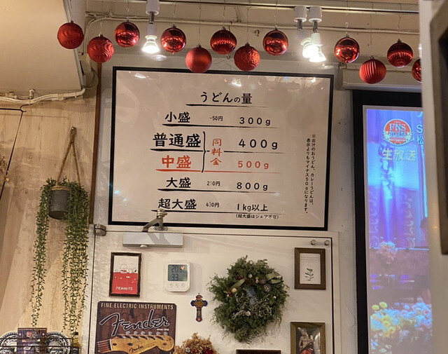 この店もうどんの標準は400g、500gまでの増量は無料。