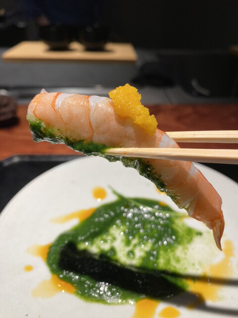 生カラスミを背負う海老が美しい、すぐに食べちゃったけどねー