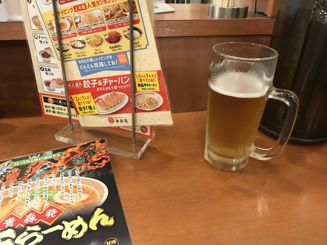 身軽になったタビビト、改めて着席し生ビールとネギみそラーメンに、チャーハンと餃子のセットを注文しました。