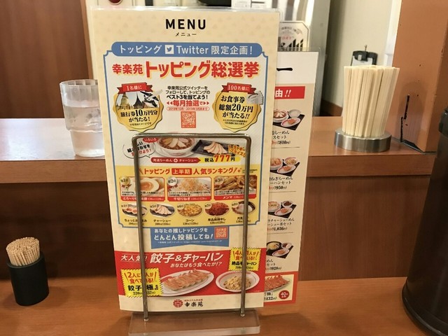 全国レヴェルのお店ならでは、混んでない時間帯は全く待たされることもなく、スムーズにお食事できました。全国津々浦々の幸楽苑様何処で食べても変わらぬレヴェルのクォリティの麺・スープ・具材・サイドメニューの全てが同じ味わい。