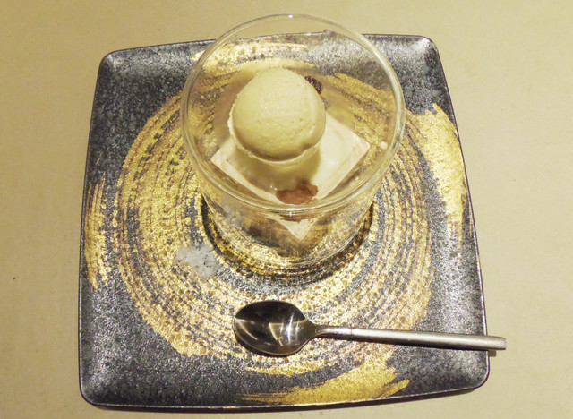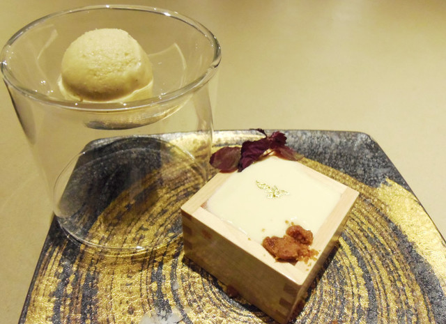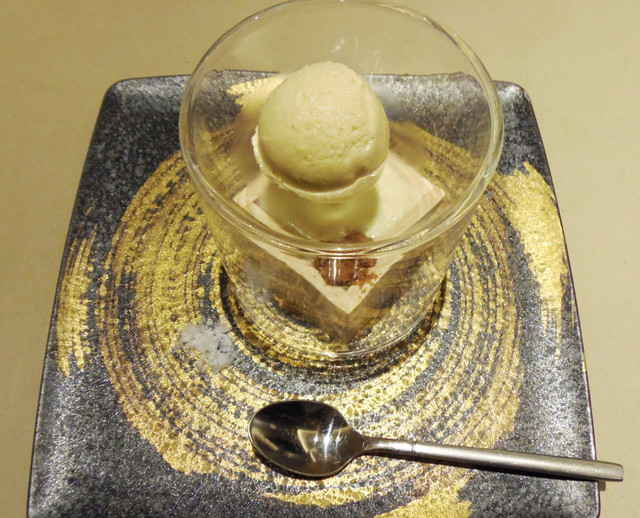 2段重ねの上には、バニラとたまり醤油のアイスが♪