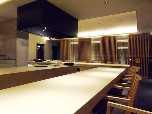 ダイニング「厨」は、カウンターを挟み、お客さんの目の前で調理してくれるので、目の前で職人の技を楽しめます。