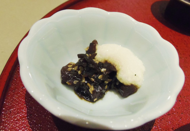 煮蛸は、かつおびしパウダーたっぷりの土佐酢ジュレで、とても柔らか。