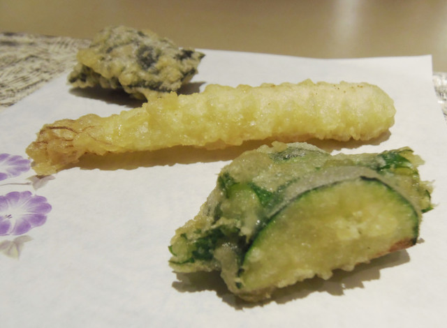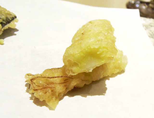 夏が旬の早採り皮付きヤングコーンは、ひげの部分が美味しいためそのままてんぷらに。