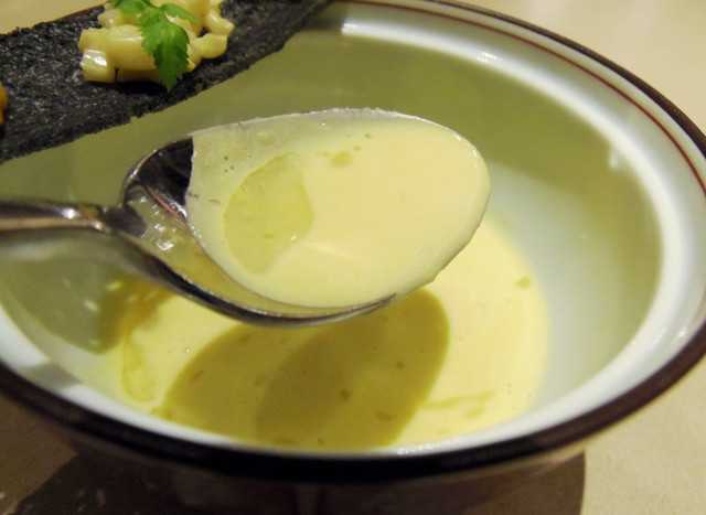 蟹味噌とそら豆の茶碗蒸しは、下からぷるぷるの蟹味噌が出てきました~。