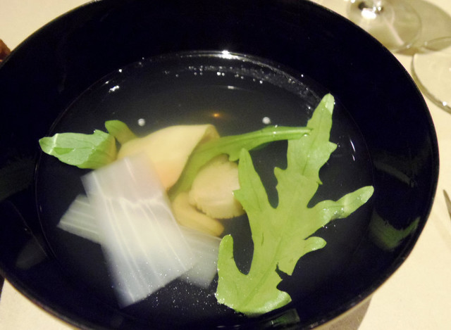 血合い抜きの鰹節と利尻昆布からとった、独自の出汁の味噌汁。