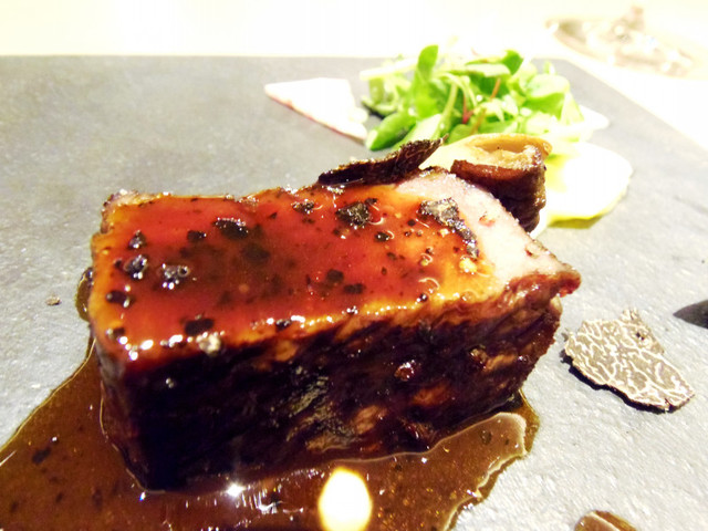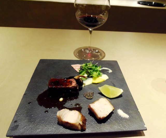 美瑛産豚のスペアリブは、乾燥しいたけと昆布を醤油に漬け込み熟成させマリネにしたあと、低温で焼き、