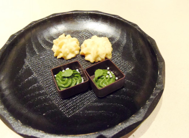 山葵と生クリームで作った山葵クリームは、ふわふわでマヨネーズのようなイメージと、酸味の爽やかさの後にまろやかさもあります。