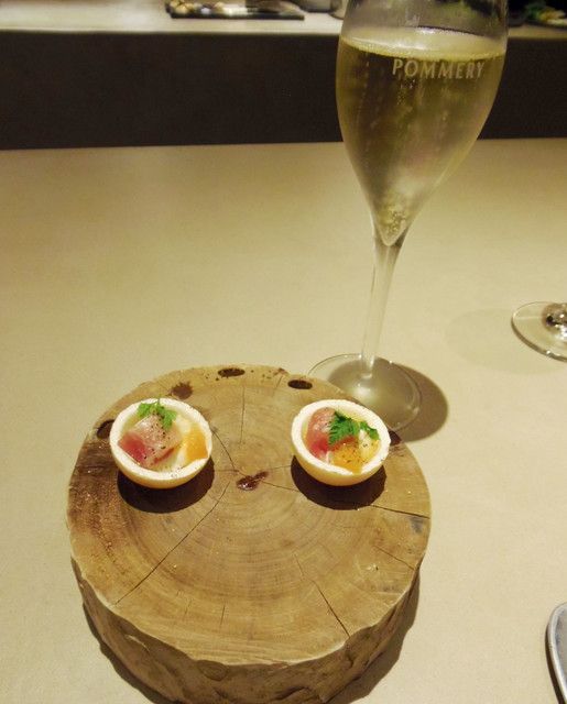 清潔感のあるカウンターとオープンのキッチンがとても素敵で、目の前で出来上がっていくお料理もすごかった。
