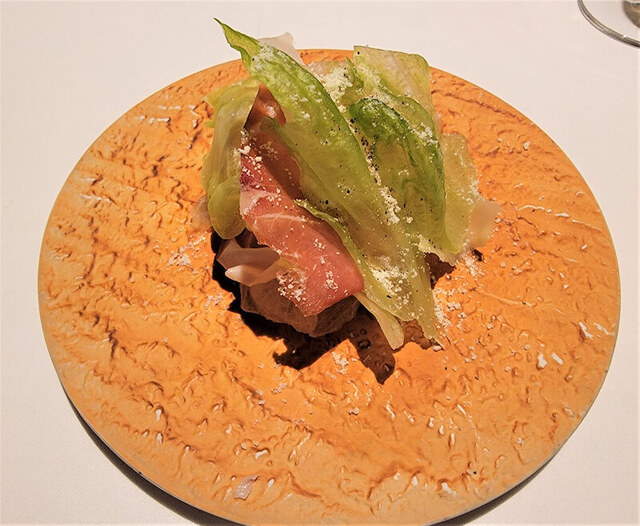 パルマ産レガート生ハムと減圧レタスのミルフィーユ
