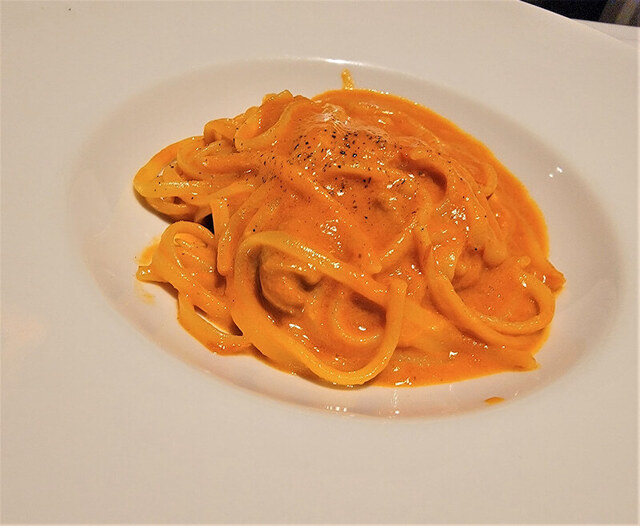 雲丹が濃厚で、塩味もほどよく、ウニとトマトのバランスがばっちりなクリーミーなパスタ。