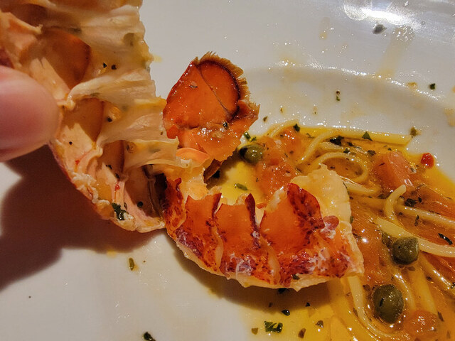 オイルとにんにく風味の中にオマール海老の風味たっぷり、オマール海老の身もたっぷりな贅沢なパスタです。