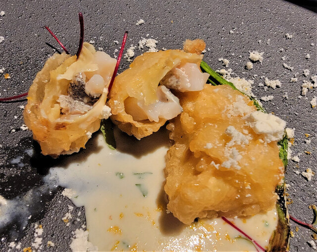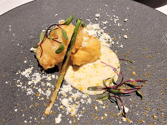 北海道産天然鱈/白子の白味噌減圧~湯葉巻きフリット