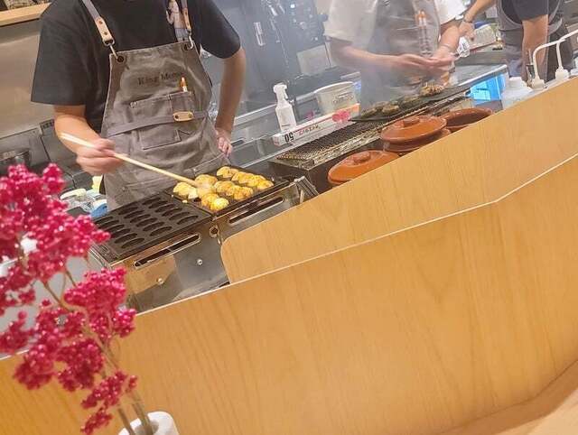 お洒落な空間のキッチンの真ん中でたこ焼きを焼かれているのも、みどころかも(^^)