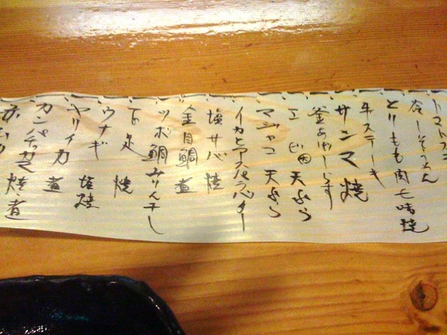 こちらでは木の鉋で削ったお品書き、毎日書き換えられて毎回違ったお刺身や季節料理が楽しめます。【写真投稿】