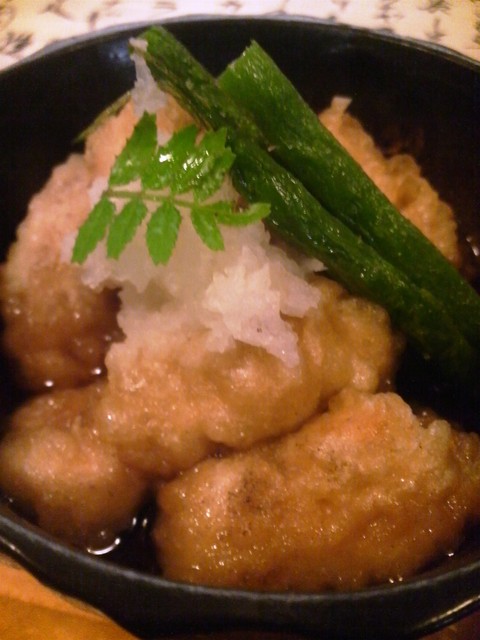 鮭の白子天ぷら天汁掛け