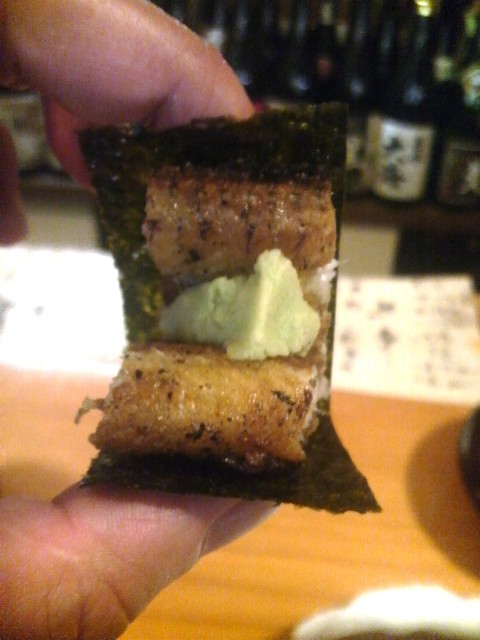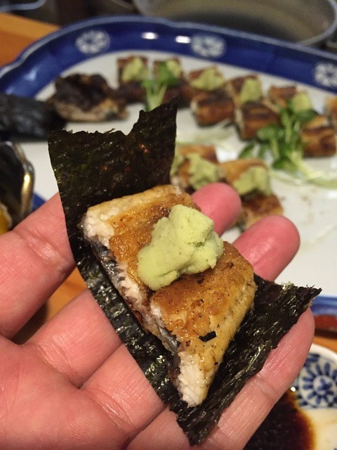 うなぎの脂でわさびが辛くないのです、、不思議です、、しかもわさびと海苔が良く合います。