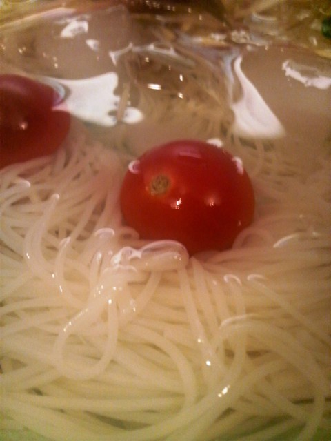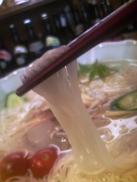 超細麺でなのにコシがあり、旨いですよ、、素麺だからと侮れません、、汁も美味しいですね。