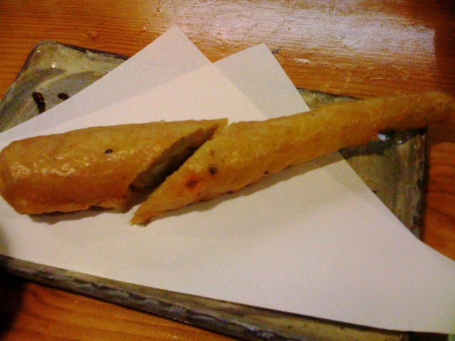 次の小鉢は・・鮭の白子の天婦羅です・・・これも秋の食材ですね、、鮭、しかも白子です。