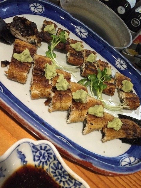 うなぎの白焼は・・前回投稿で説明させていただきましたが、わさびを挟み有明産海苔で包んで頂きます。