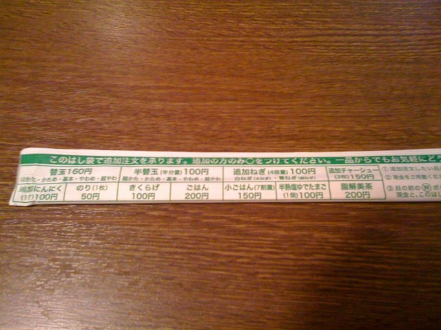 入口のオーダー票に自分好みの味を書き込みます、自分流に味をアレンジ出来るのもこちらの特長であり嬉しいシステムですね。