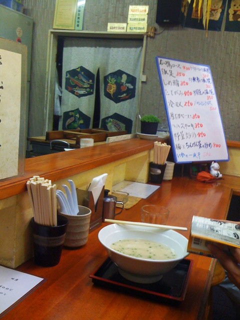しかしながら、店主らしき御主人と奥さんは人が良さそうな感じの方達で、常連さんらしき人となにやら話していらしたんですが、ニコニコで気さくに振舞われてました。ふーん(・_・;