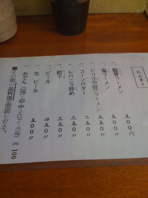 メニューはラーメンメニューとは別に有るみたいで、夜はどうも居酒屋さんモドキになる様で、、、