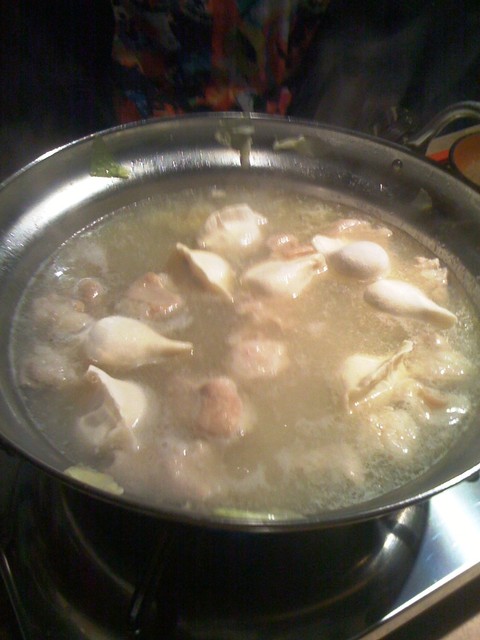 甘酢を器に取り、、モツ鍋が出来上がりを待つことに♪